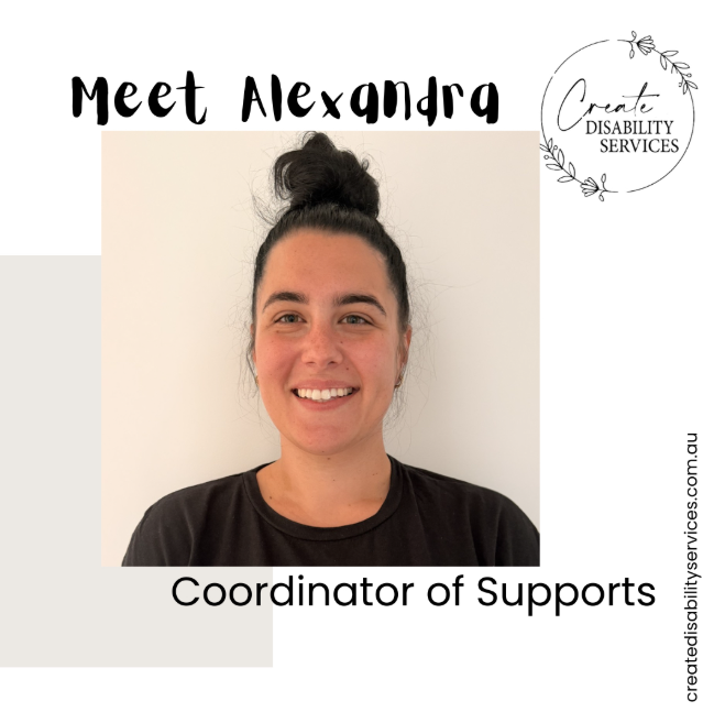 Alex has come into the industry with a passion for personal growth and development, making her a strong asset to not only our team but the individuals she supports. With this being said, I’m sure you would all agree that Alex is an extremely strong addition to our growing team here at Create Disability Services and we are beyond thrilled to have her by our side!